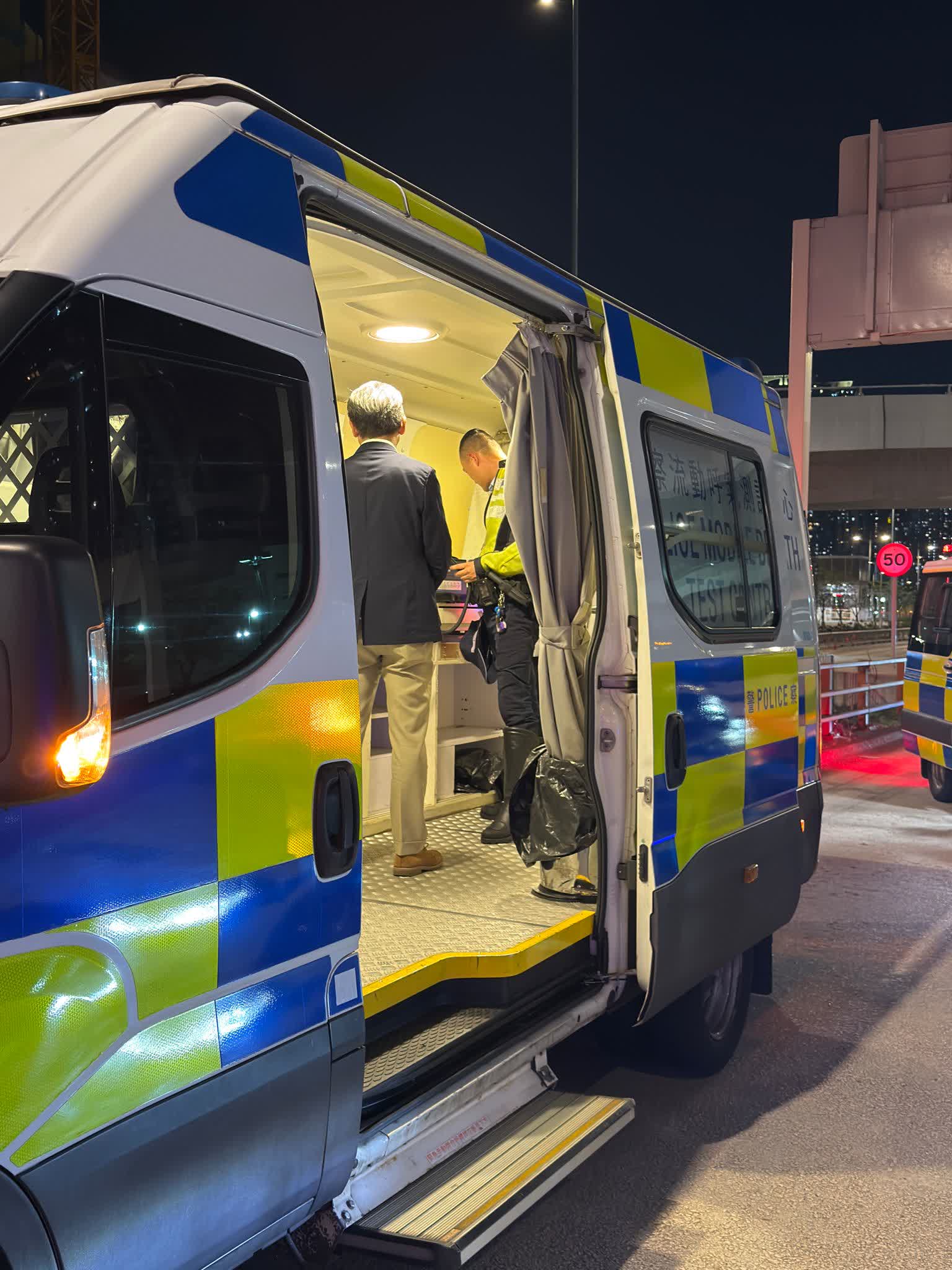 香港文匯報訊(記者 蕭景源)警方東九龍總區交通部執行及管制組特遣隊人員,於萬聖節在區內打擊「酒後駕駛」及「毒後駕駛」,昨晚(31日)在黃大仙及秀茂坪區截查可疑車輛,並向駕駛人士進行酒精呼氣測試。