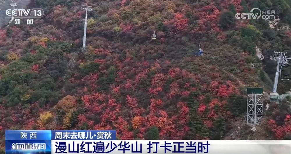 乘坐在平稳运行的吊厢里,最直观的感受就是视野的震撼。大家看,窗外是沿途的秦岭秋色,秦岭巍峨而庄严,而秋色像一位温柔婉约的画家,以金黄、火红、深绿为墨挥洒自如。山与色,一刚一柔,一静一动,相互映衬,勾勒出一幅静谧而深邃的秋日画卷。